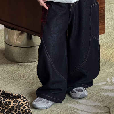 - 비다이어리.레드체크포켓기모데님청바지