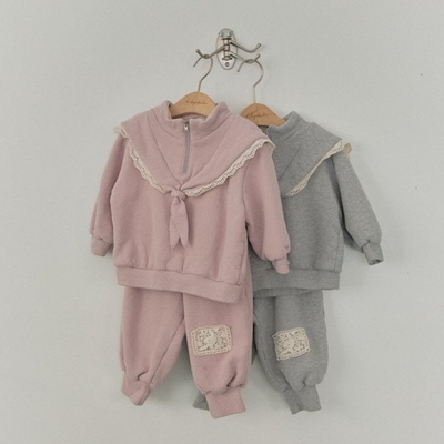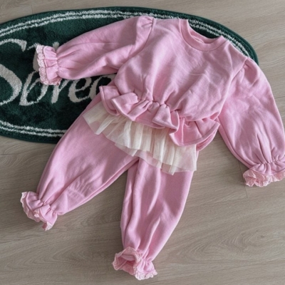 - [빠른수입] 기모) 핑크바지 플라워자켓 세트