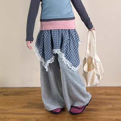비다이어리.디어체크레이어드스커트팬츠