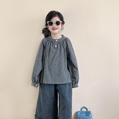 비다이어리.레이브체크블라우스